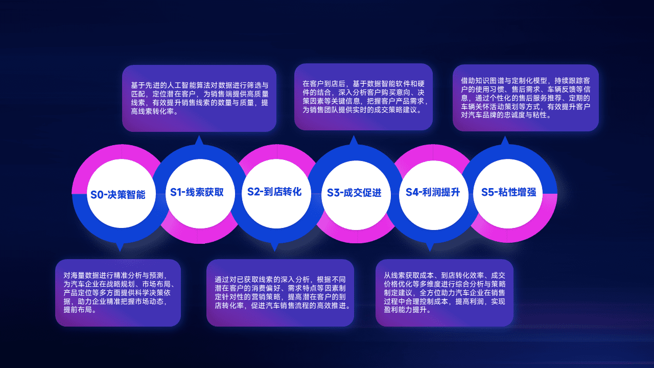 通过拓宽潜在客户来源、、、优化线索分配并提高到店转化率,,,以增强销售效率。。。同时,,,利用线索数据不断优化分析模型,,,有效提升转化率,,,扩大营销影响力。。
